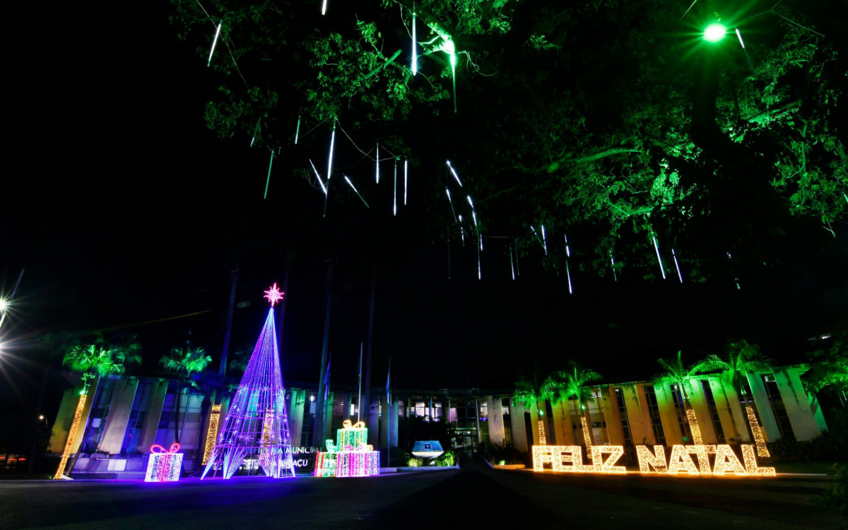 Três árvores de Natal estão enfeitando a cidade, sendo a maior delas, com 15 metros de altura, instalada no Paço Municipal. Imponente e iluminada, ela recebeu uma grande estrela em seu topo e é o centro das atenções na praça. Ela está acompanhada por caixas de presente com laços em LED e letras tridimensionais luminosas com a saudação “Feliz Natal”, proporcionando um ponto de interação e fotos. As palmeiras do local também ganharam iluminação.