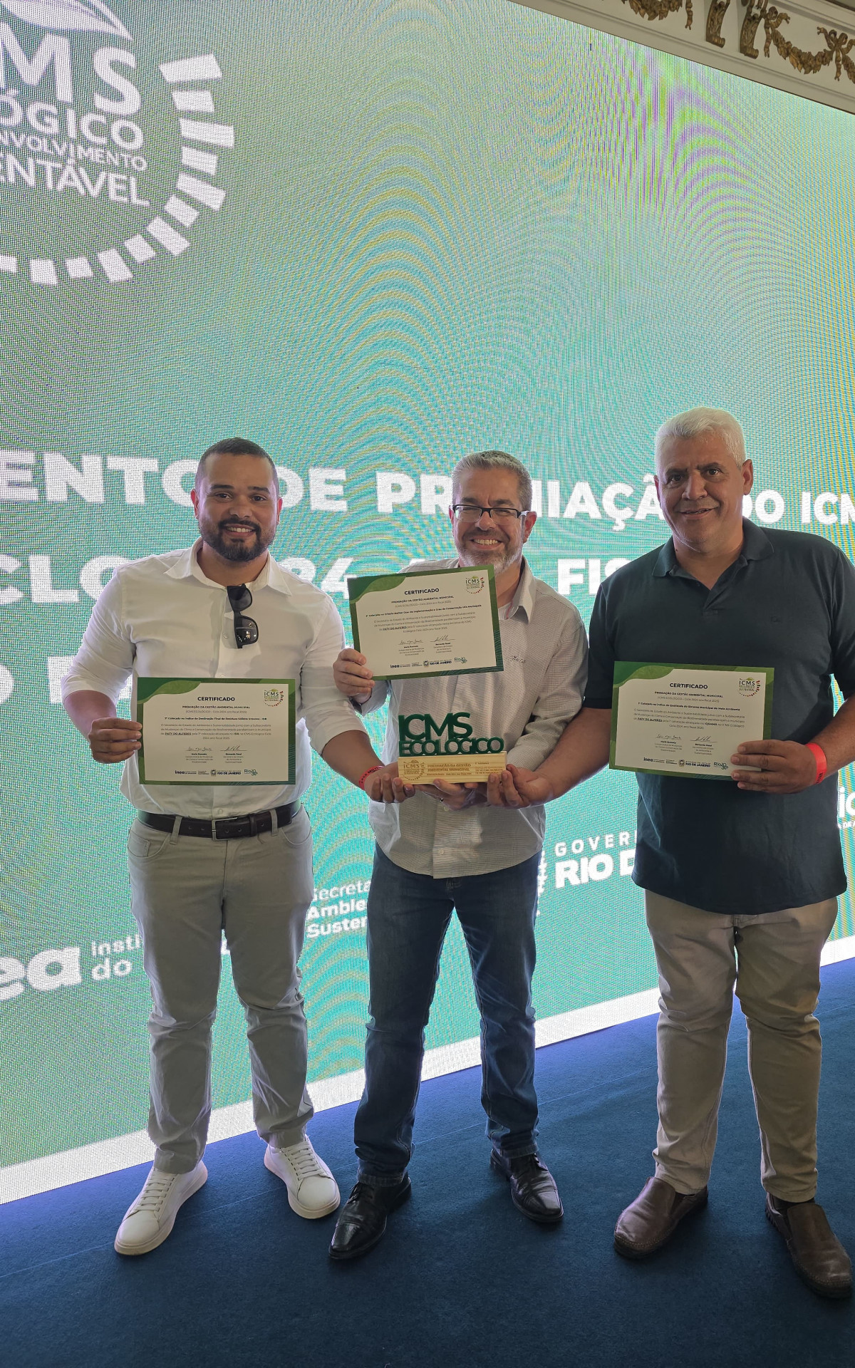 Os representantes dos municípios premiados também receberam o cheque simbólico do ICMS Ecológico. Entre os presentes na cerimônia estavam o governador Cláudio Castro, o secretário de Estado do Ambiente e Sustentabilidade, Bernardo Rossi, e o presidente do Instituto Estadual do Ambiente (INEA), Renato Jordão.