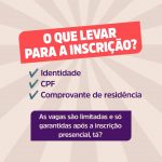 A inscrição deve ser feita na Secretaria da Mulher, localizada na Rua Prefeito Hilário Costa e Silva, 111, Eldorado. Para efetivar a matrícula, é necessário apresentar identidade, CPF e comprovante de residência. As vagas são limitadas e só serão garantidas após a inscrição presencial.