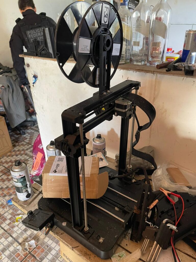 Na ação de hoje, policiais federais cumpriram dois mandados de busca e apreensão em endereços localizados no bairro supracitado. Também seria cumprido um mandado de prisão preventiva contra o principal investigado, mas ele não foi encontrado no local e segue foragido da Justiça. Durante as buscas, os policiais encontraram equipamentos, maquinários, acessórios e insumos utilizados na fabricação e montagem de armas e munições.