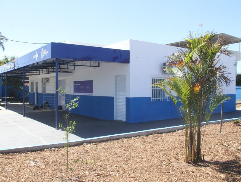 A unidade tem recepção com sala de espera, consultórios multifuncionais, odontológico e ginecológicos, salas de curativo, procedimentos, acolhimento, imunização, coleta laboratorial, estoque, inalação, esterilização, administração, direção, refeitório e área livre de convivência.