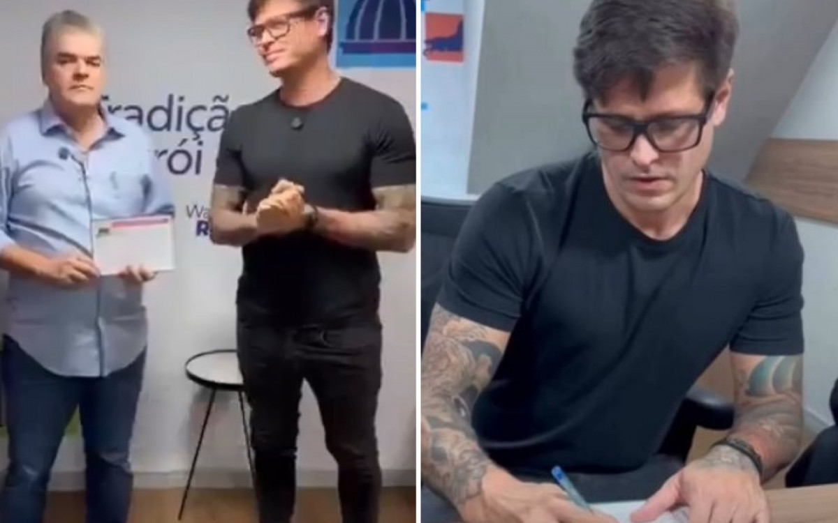 Na gravação, o artista aparece ao lado de Washington Reis, presidente do partido no estado. O dirigente destacou que Dolabella representará pautas voltadas à família no Congresso Nacional.