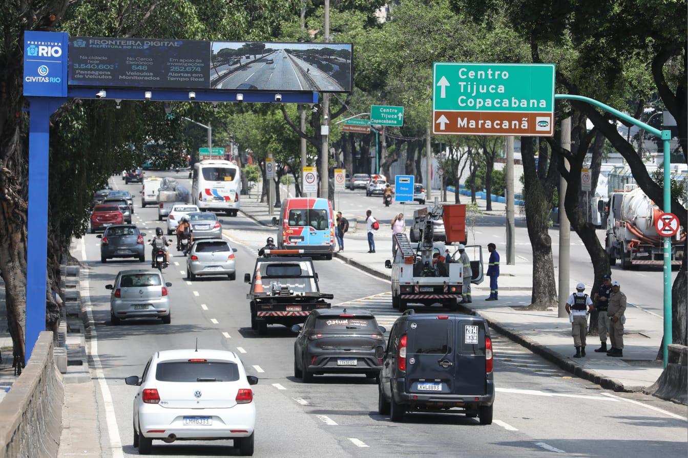A Prefeitura do Rio inaugurou, nesta quarta-feira (18), o primeiro semipórtico inteligente da Central de Inteligência, Vigilância e Tecnologia em Apoio à Segurança Pública (CIVITAS Rio). O equipamento foi instalado na Avenida Francisco Bicalho, na saída da ponte em direção ao Centro, marcando o início da chamada Fronteira Digital.