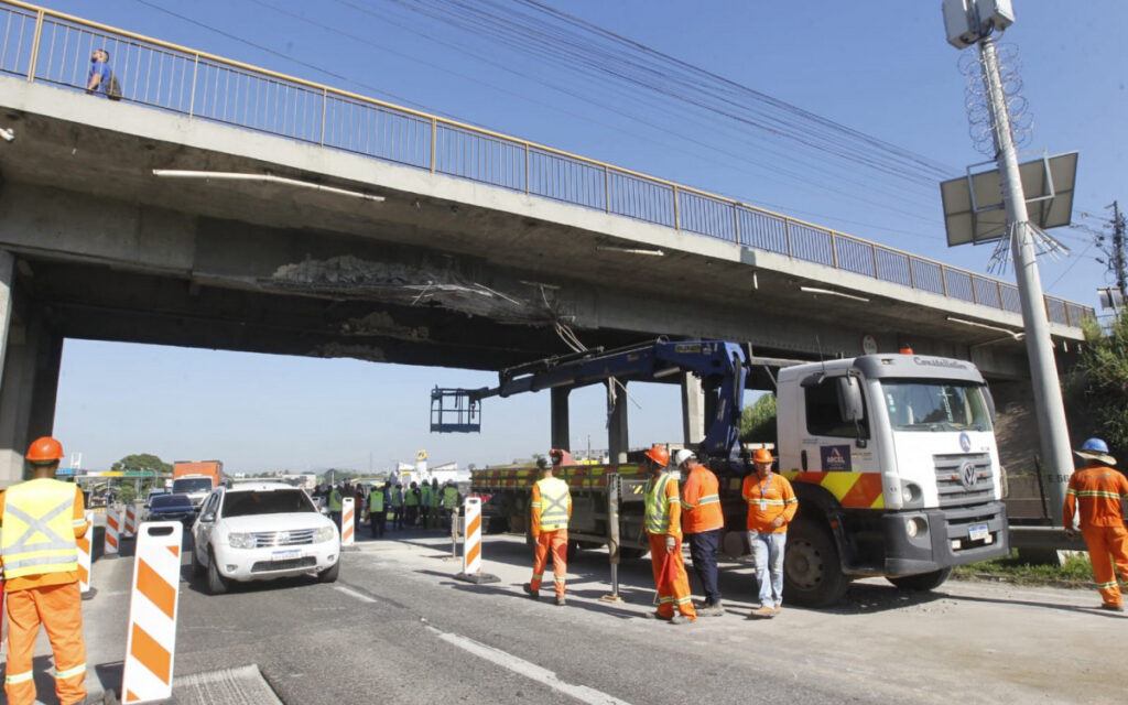 Acidente com carreta danifica viaduto e causa interdição na Dutra, em Nova Iguaçu
