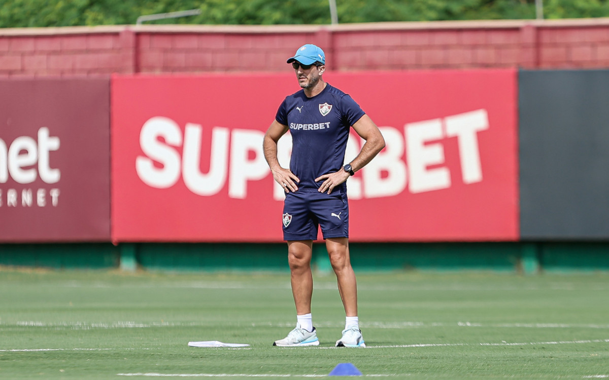 Zubeldía em ação durante treino do Fluminense, no CT Carlos Castilho. Foto: Lucas Merçon / Fluminense FC
