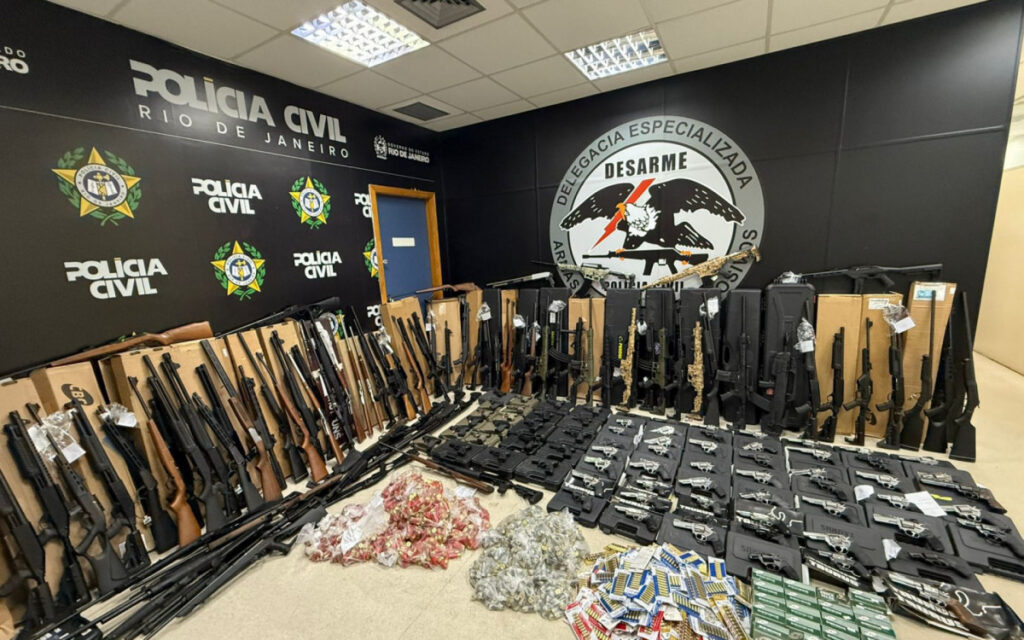 Uma operação da Polícia Civil do Rio de Janeiro resultou na apreensão de um arsenal com 160 armas de fogo e cerca de 7,8 mil munições em São Gonçalo, na Região Metropolitana, na noite desta quarta-feira (8). As armas estavam expostas à venda irregular em um estabelecimento comercial e incluíam pistolas, revólveres, rifles e espingardas […]