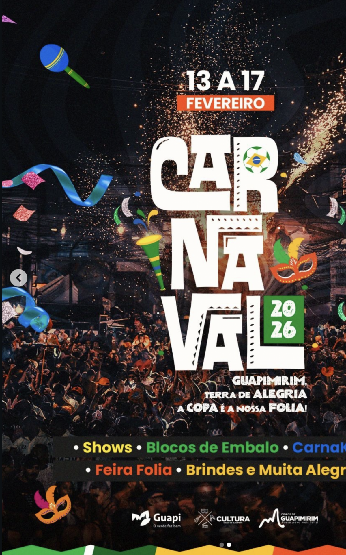 A cidade de Guapimirim já se prepara para o Carnaval 2026, que acontecerá entre os dias 13 e 17 de fevereiro. Com o tema “A